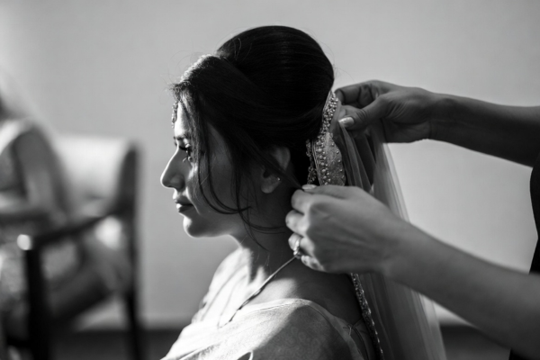 Complete your bridal look at The Bridal Bespoke Works with open hairstyles, elegant buns, perfectly draped sarees, and flawless dupatta setting. Step out as a picture-perfect bride!